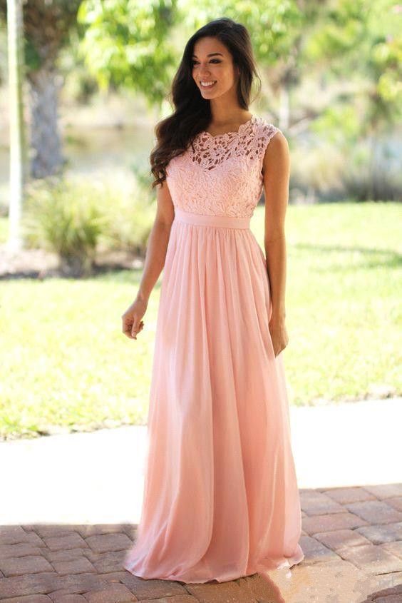 Vintage Lace Long Bridesmaid Dresses 2018 Spring Jewel Neck A Line Chiffon Skirt Maid Of Honor Gowns Formal Wedding Guest Dresses Cps463 Rose