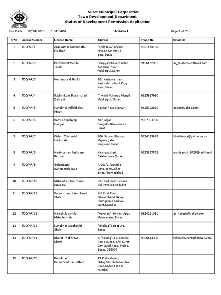List Of Surverior Surat Municipal Corporation