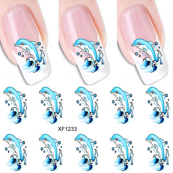 Waterproof Water Transfer Nails Art Sticker Cute Cartoon Dolphin Design Girl And Women Manicure Tools Nail Wraps Xf1233