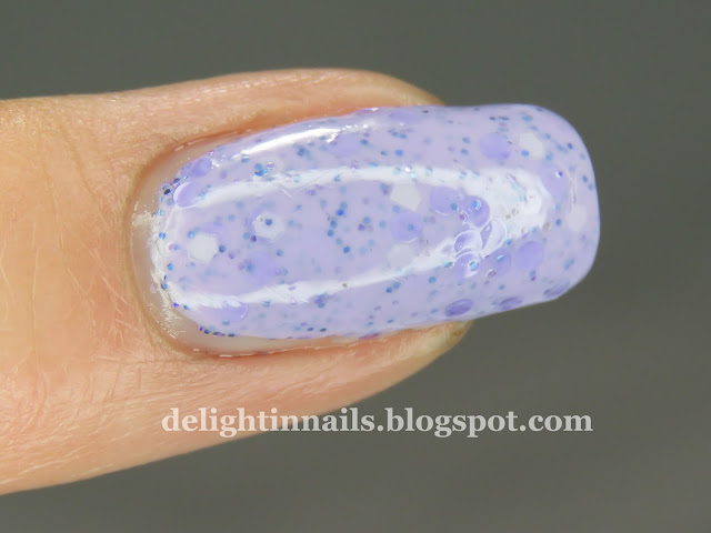 And last, but not least, is Marionberry Cream. This is a pale lavender crelly with lavender and pearly white hex glitters and tiny purple glitters. This polish was super smooth too. It required very minor fishing, but not much. And it's purple, so I lurve it. :P