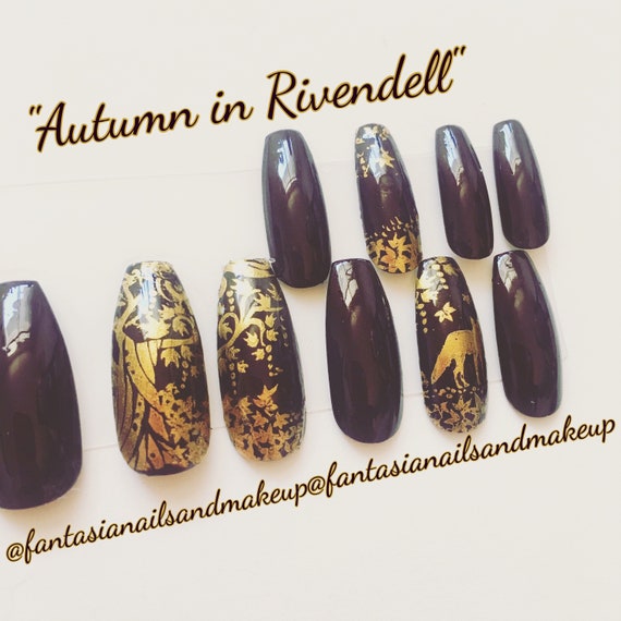 Plum Wine Fall Fox Nails Forest Animal Nails Long Coffin Etsy